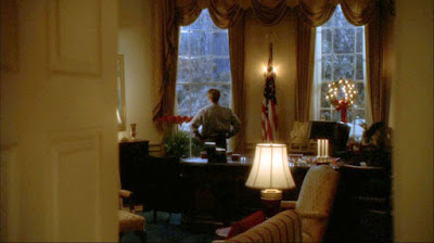 (This does seem a bit of an odd performance considering what we've seen of Will before, standing up to Sam about how he ran the Wilde campaign with a dead candidate, then standing up to him again about staying on for Sam's run, then standing up to Toby and criticizing his writing style. I suppose the office of the Presidency and the importance of the Oval Office itself was just a bit too much.)